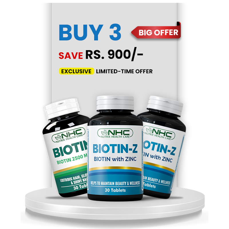 Biotin is available at all leading pharmacies in Pakistan. You can also get home delivery by placing an order online.