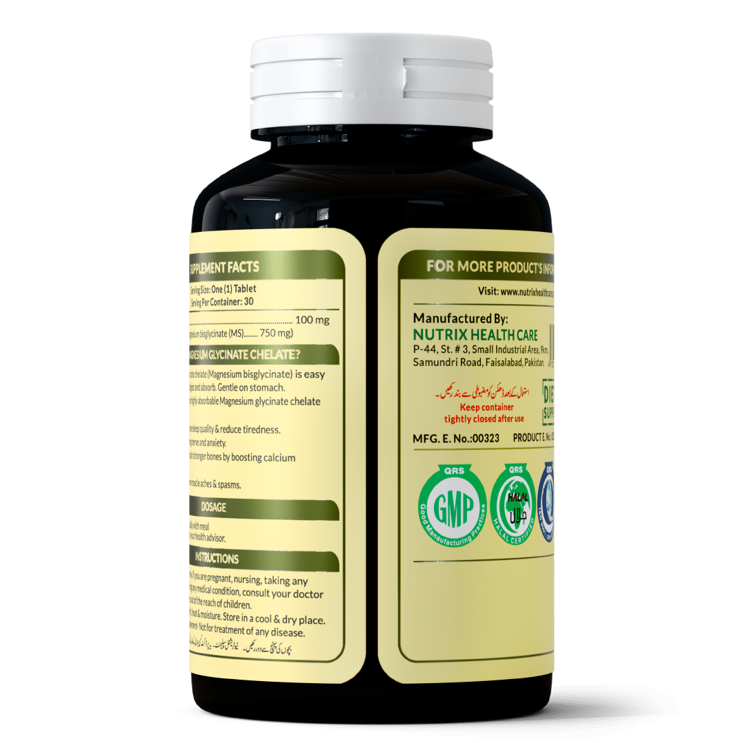 Magnesium contributes to over 600 enzymatic reactions in the body. It supports muscle relaxation and contraction, promotes Calcium absorption for stronger bones, and supports cardiovascular health.